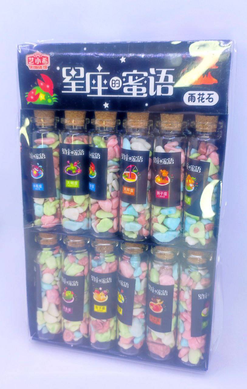 Драже "YI XIAO XI" в стеклянной колбе КАМУШКИ, ЗНАКИ ЗОДИАКА 12 гр. 12 шт. уп. (0209)