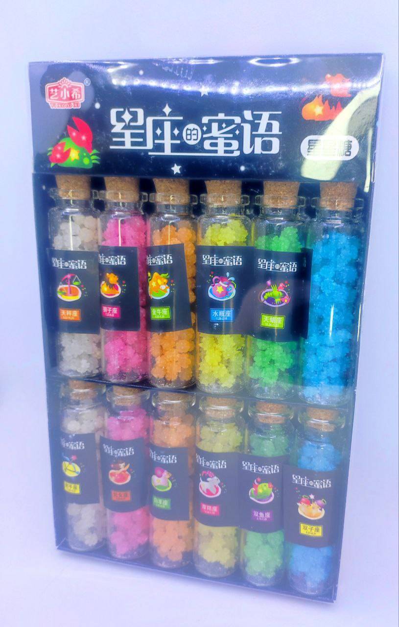Драже "YI XIAO XI" в стеклянной колбе ЗВЕЗДЫ. ЗНАКИ ЗОДИАКА 12 гр. 12 шт. уп. (0193)