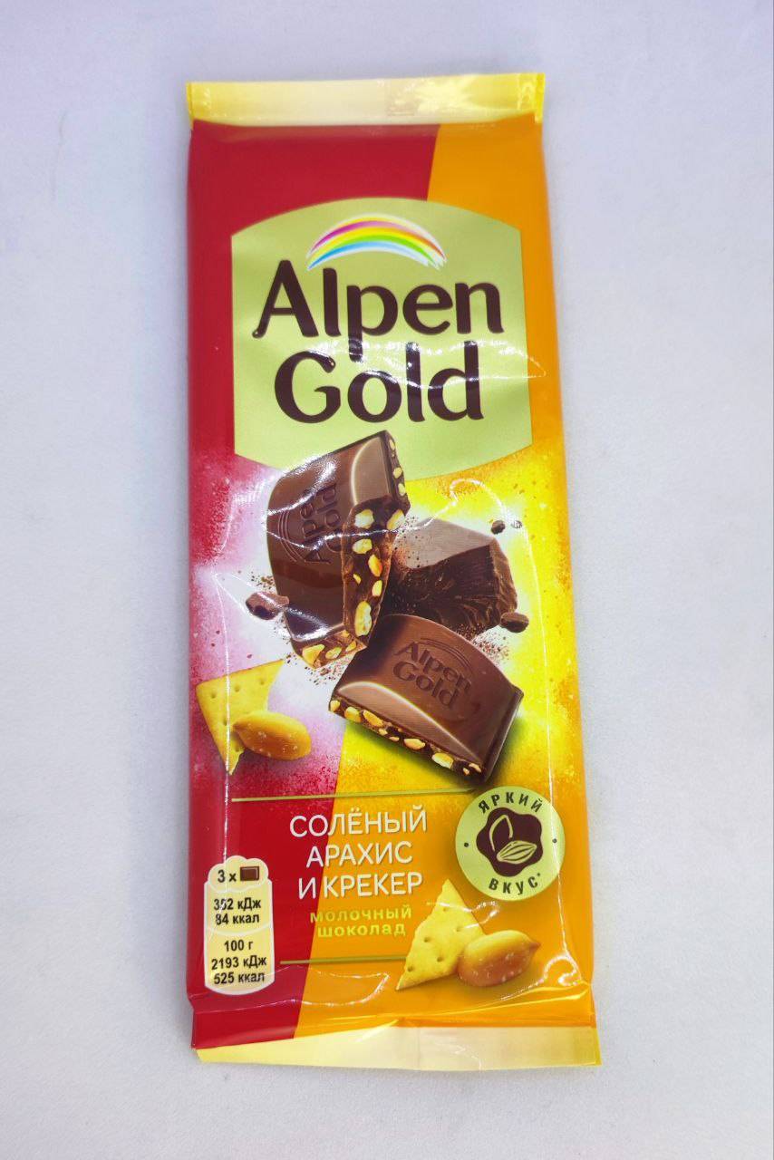 Плиточный шоколад "Alpen gold" Арахис и крекер 80 гр. 21 шт. уп.