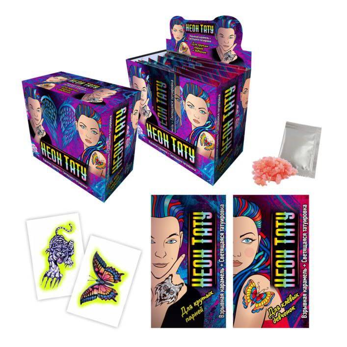 Взрывная карамель "Неон тату" со светящейся татуировкой 1гр*48шт*