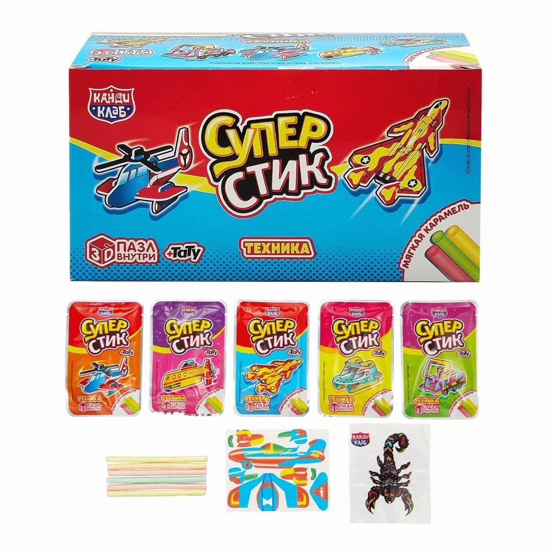Мягкая карамель с игрушкой и татуировкой "Супер Стик с 3D пазлом" (техника) 5 гр. 40 шт. уп.