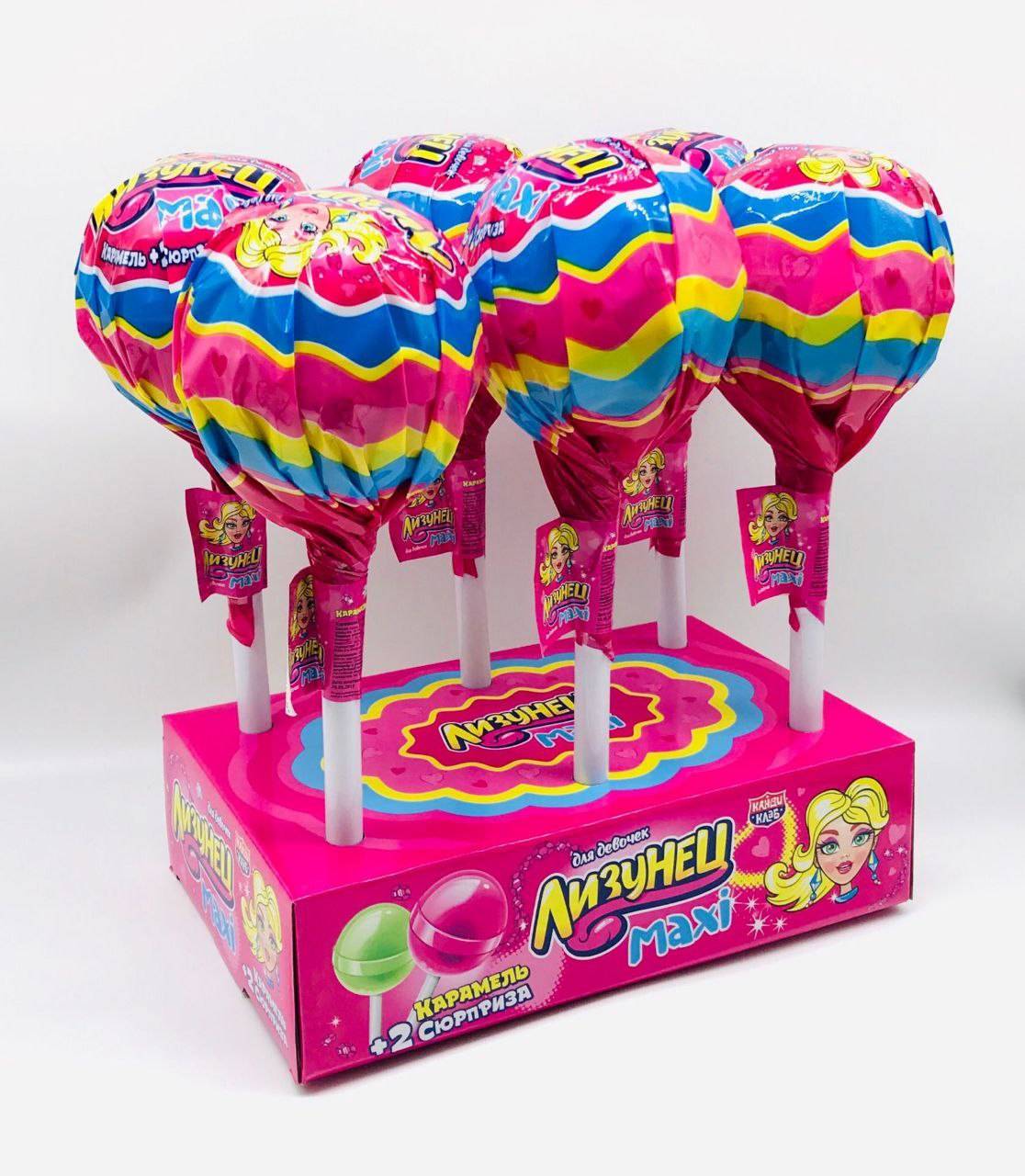 Лизунец MAXI. Карамель на палочке с жевательной резинкой и подарком в наборе (для девочек) 125 гр.