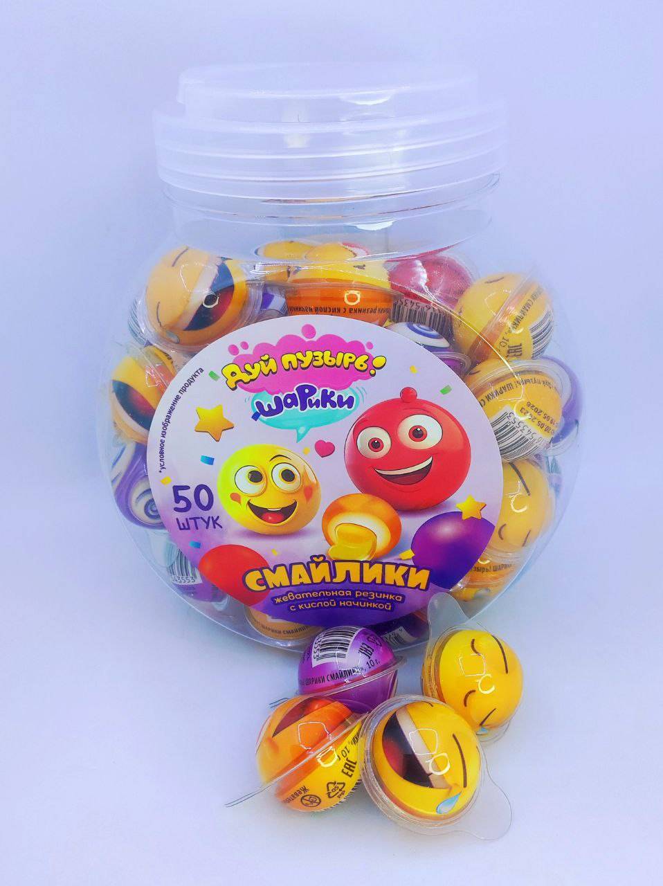Жевательная резинка с кислой начинкой «Дуй пузырь! ШАРИКИ СМАЙЛИКИ» 10 гр. 50 шт. уп.