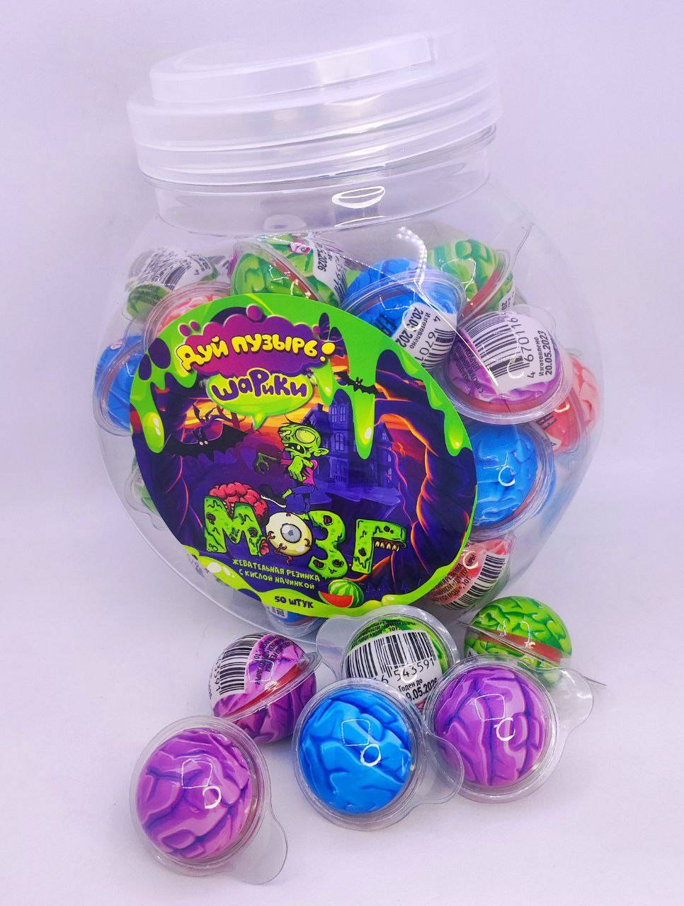 Жевательная резинка с кислой начинкой «Дуй пузырь! ШАРИКИ МОЗГ» 10 гр. 50 шт. уп.