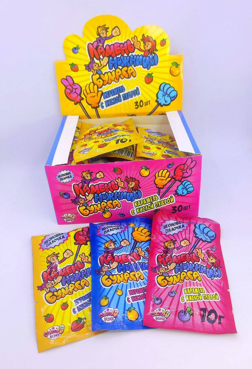 Карамель леденцовая с кислой пудрой «Камень-ножницы-бумага» 10 гр. 30 шт. уп.