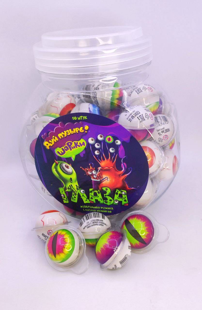 Жевательная резинка с кислой начинкой «Дуй пузырь! ШАРИКИ ГЛАЗА» 10 гр. 50 шт. уп.