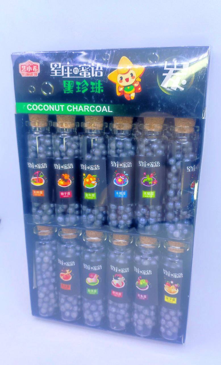 Драже "YI XIAO XI" в стеклянной колбе ЧЕРНЫЙ ЖЕМЧУГ, ЗНАКИ ЗОДИАКА 12 гр. 12 шт. уп. (0575)