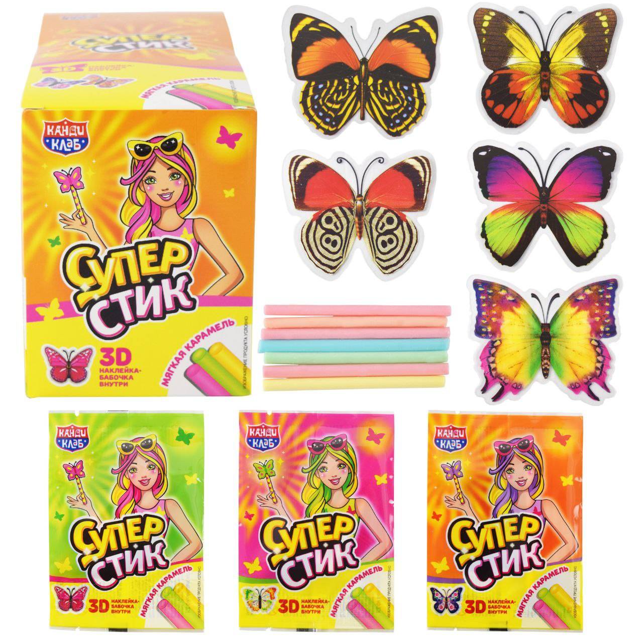 Мягкая карамель с игрушкой "Супер Стик с 3D наклейкой" (бабочки) 5 гр. 48 шт. уп.