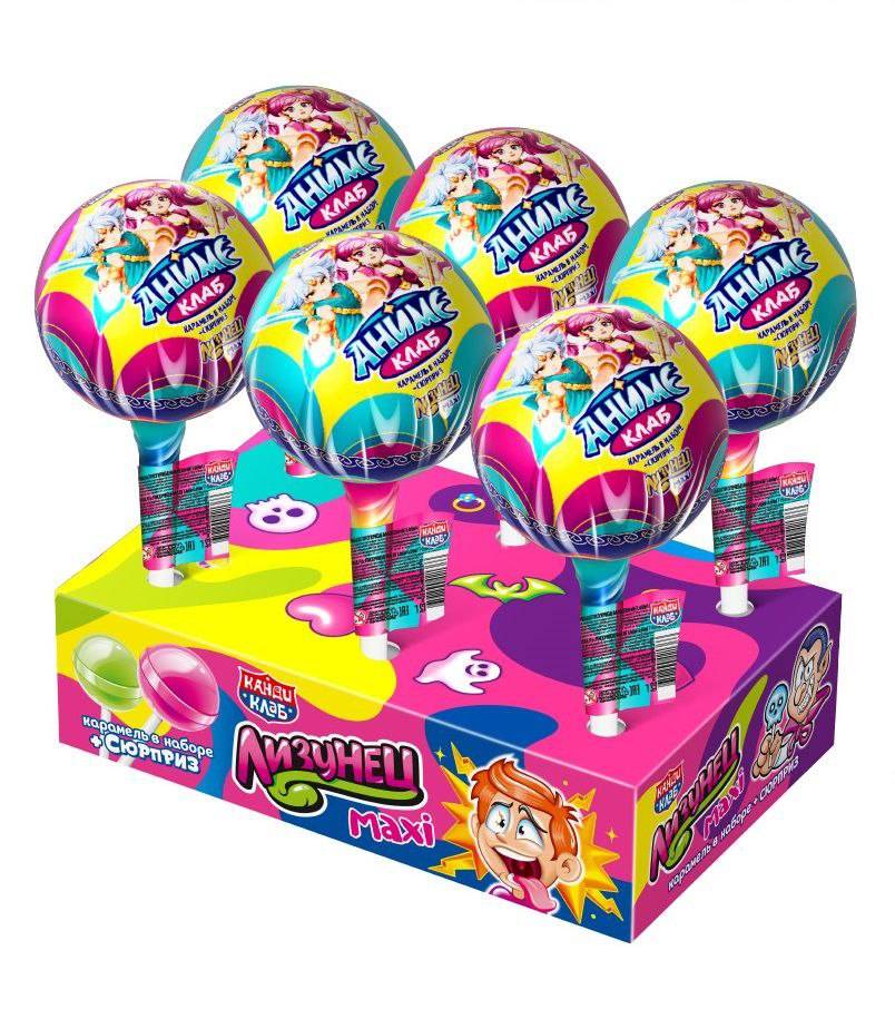 Карамель на палочке в наборе с подарком "Лизунец MAXI Аниме Клаб" 112 гр.