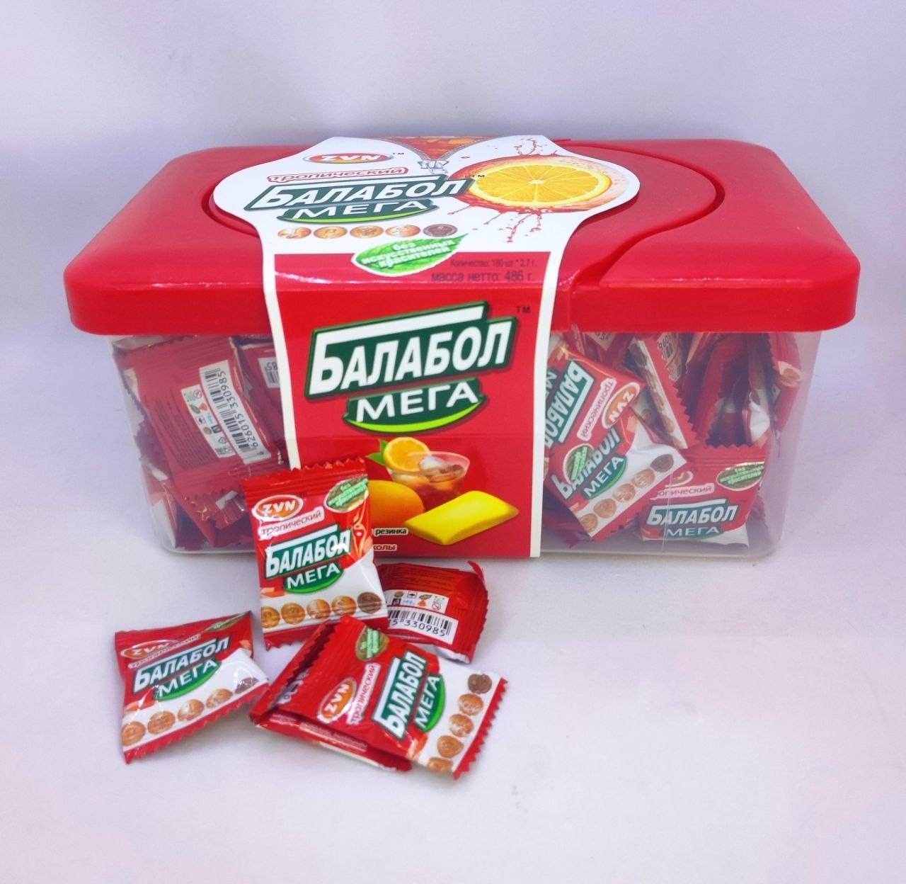 Жев. резинка«ТРОПИЧЕСКИЙ БАЛАБОЛ МЕГА»со вкусом лимона, колы и мяты 486 гр. (2,7г*180шт)
